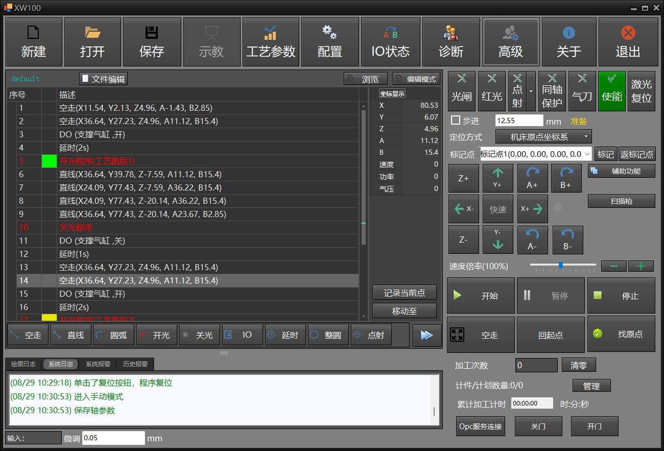 Friendly teaching interaction: supports functions such as straight line, circle, arc, laser on, laser off, IO control, waiting for instructions, etc., allowing users to perform programming operations conveniently;